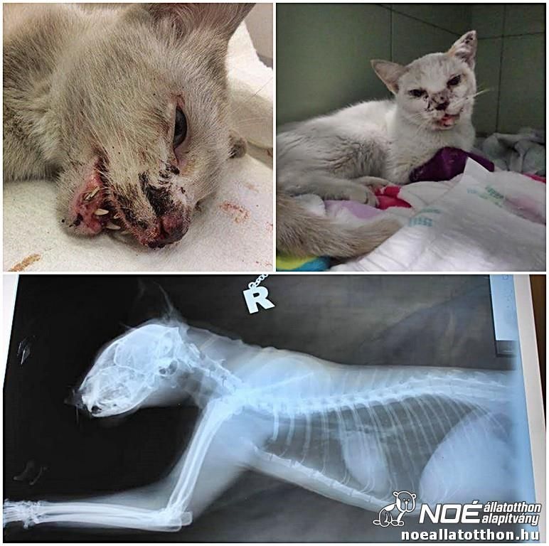 Der Tiergesundheitsdienst Illatos út bat die Katzenrettungsgruppe des NOAH Tierheim Ungarn um Hilfe für diese schwerverletzte Katze. Selbstverständlich sagten wir sofort zu und schickten sie umgehend zu unserem WunderDoktor Boda.