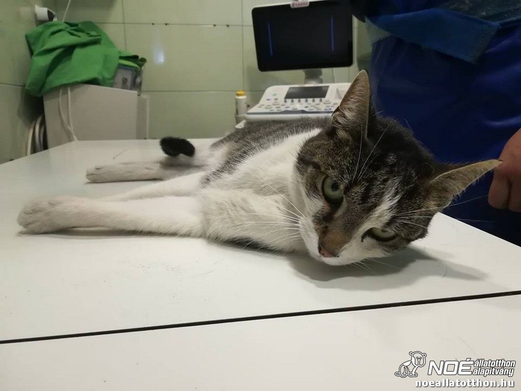 Anfang Juli bekam unsere Katzenrettungsgruppe einen Hilferuf zu einer Katze, die im Ortsteil Soroksár in Budapest auf dem Beton lag und sich nicht bewegen konnte. Wir nahmen sie sofort in unsere Obhut und brachten sie in die Tierklinik. Dort wurden bei der ersten Untersuchung zunächst die Fliegenlarven von ihr entfernt, welche sie bereits befallen hatten und dann wurde eine Röntgenuntersuchung vorgenommen, die einen erschütternden Befund ergab.
